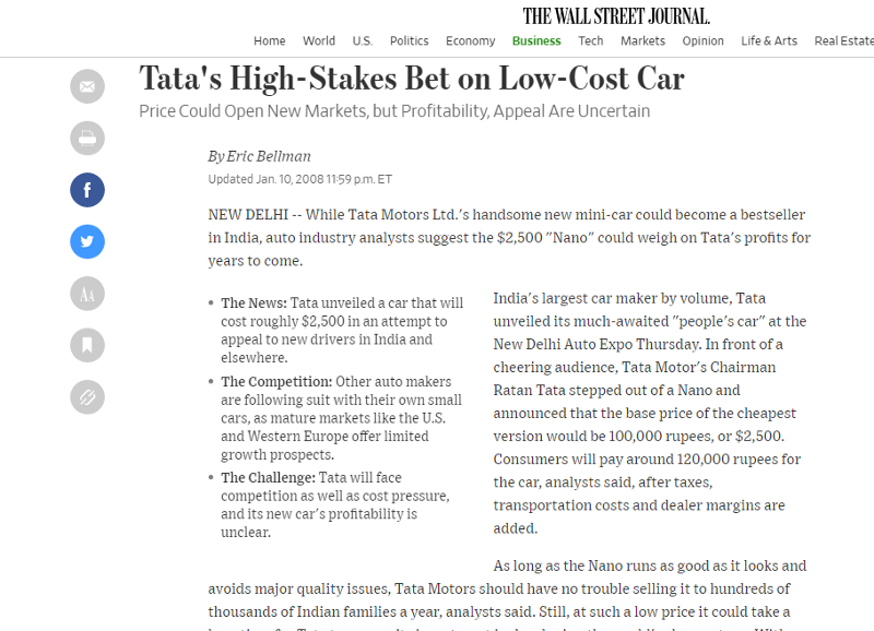 The point that I am trying to make is, if you saw what you saw, you read what you read and heard what you heard back then- what would have led you to predict this outcome for the Nano? Nothing!