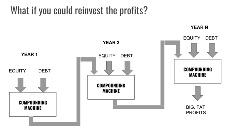 Let me explain. Sir- I am sure you think of your company as a dairy company or a logistics company or a milk processing company. But I think of your business and every other business metaphorically as a compounding machine. It takes input capital in the form of shareholder’s equity, external borrowings and profits from the previous year and throws out profits for the next year. Something like this: