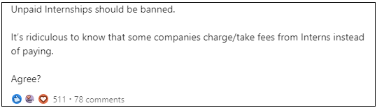 LinkedIn is the only social medium I use. And frequently on LinkedIn I see people expressing their opinions on why Internships need to pay the intern. And how companies “take advantage” of the intern by not paying them or not paying them enough.