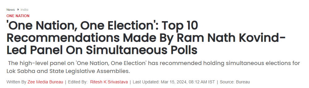 A high level panel was setup under the leadership of the ex-President of India, Mr. Ram Nath Kovind. And the panel recommended having simultaneous polls in the center and state.